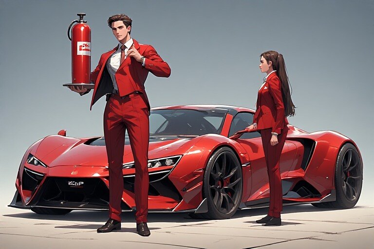 First of all, looking good while carrying a gas gallon is a confidence boost. Red suit, red pants, red gallon coordinated like a walking fashion statement. Who said fueling up can’t be glamorous? Every passerby gets a little pop of color in their day.