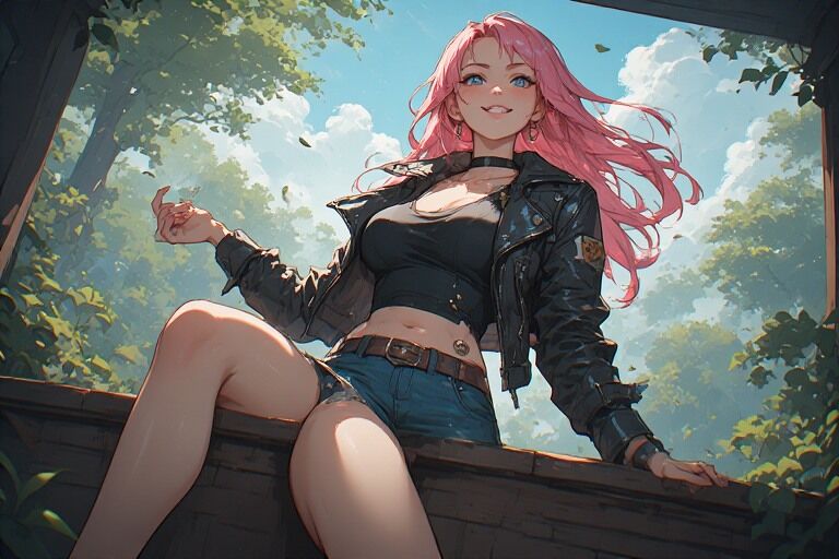 Yo has a special talent: she can turn one minute into a full photo shoot especially when pink hair and confidence are involved. On this particular day, she stepped out in a leather jacket and short outfit, heading straight to the second floor like it was her personal studio.
