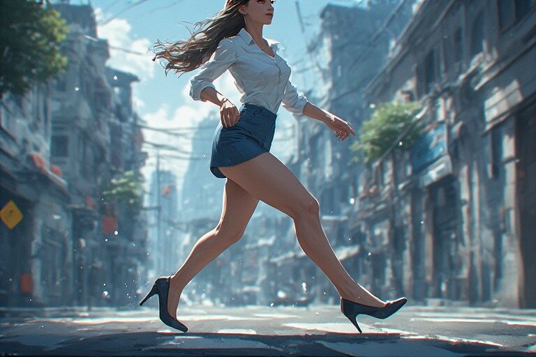 Running in heels may seem impossible, but our lady makes it look fierce. Whether she’s twirling in a playful dance or moving quickly to protect her personal space, mastering high heels gives her agility without sacrificing style. It’s proof that you don’t have to choose between looking good and being fast heels and grace can coexist!