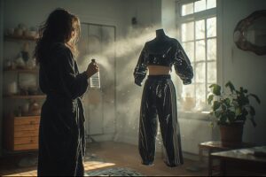 The bathrobe is still on her shoulders, but now it feels like she’s standing next to something far too fashionable for a casual home experiment. She slowly reaches out, touches the material again, half expecting it to revert back. It doesn’t.